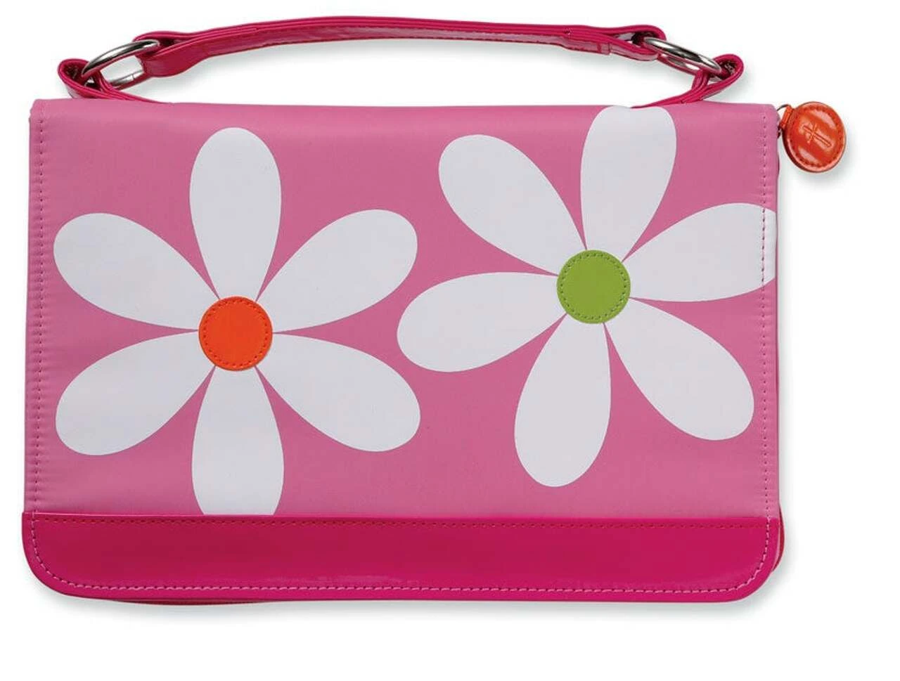 Trendy, bright flower design for spring?sure to please fashion-minded women. Featuring nylon material with faux patent leather accents , exterior zipper pocket, colorful zipper pulls with embossed cross and interior pen and pencil holders, this cover is sure to please a woman at any age. This book and Bible cover will fit your NIV Young Women of Faith Bible, NIV True Images Bible, any Zondervan Devotional Bible and many other books and Bibles up to 6 1/8″ x 8 13/16″ (224mm x 156mm)