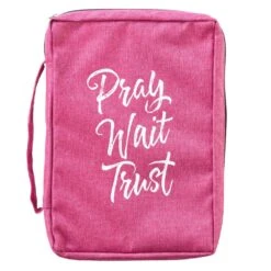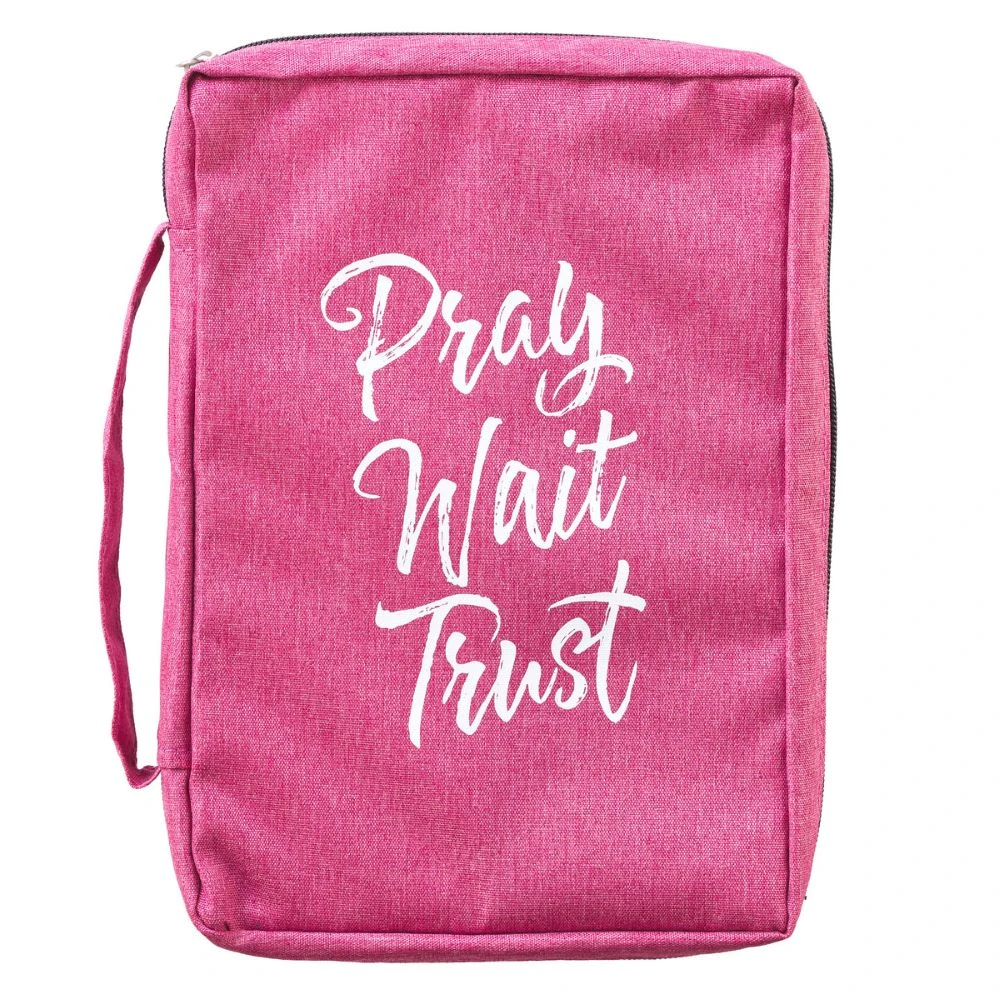 Pray, wait, trust. These things are easy to say but often difficult to live out in the midst of trying circumstances. The Pray Wait Trust Pink Poly-canvas