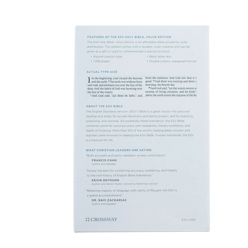 Features: 8-point text size, Two-column paragraph format Size: 3.81 cms H x 20.83 cms L x 13.21 cms W (0.66 kgs) Pages: 1056 Binding: Bonded Leather Color: Black This edition comes with a durable cover material and can be given as a gift or used to commemorate a special occasion.