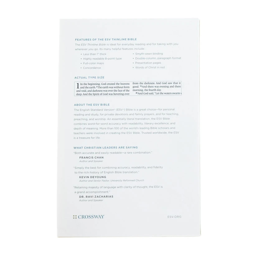 At just 1 thick this bestselling ESV Thinline Bible is ideal for use at home and on-the-go. There’s an ESV Thinline Bible that’s perfect for everyone and
