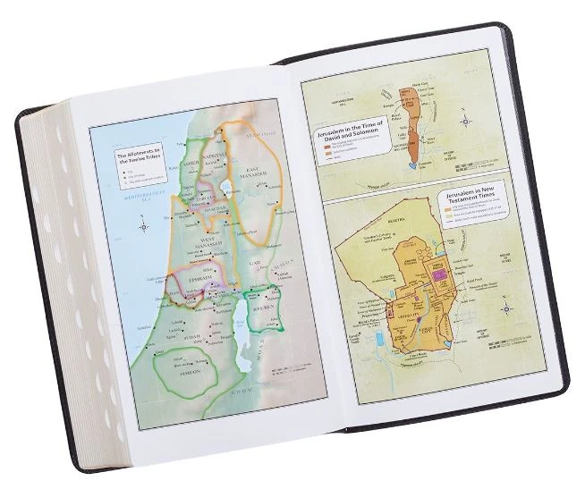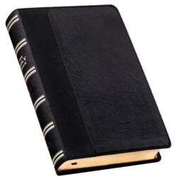 With an easy to read 14pt type in a double-column format and footnote cross-reference guide, concordance and topical verse finder, you’ll find this Giant Print Edition of the King James Bible purposeful for study and readable without strain. The words of Christ are printed in red ink and there are 8 full-color annotated biblical maps. The edition includes the Epistle Dedicatory.The attractive Black Bible binding is a quality man-made material with the look and feel of real leather (trade name LuxLeather). Gold foil pressed titling and accents and gold gilt-edged pages enhance the simple elegance of the design. There is an attached ribbon page marker and handy thumb indexing. 1806 Pages.Text Size 14pt5 5/8 x 8 3/4 x 1 5/8 Inch1806 Gold Gilt-Edged PagesFaux Leather Flexcover BoundThumb IndexingLay-Flat SpineAttached Ribbon Page MarkerWords of Christ in Red InkFootnote Verse Cross-Reference GuideConcordanceUnique Scripture Verse FinderOne-Year Bible Reading Plan8 Full-Color Maps